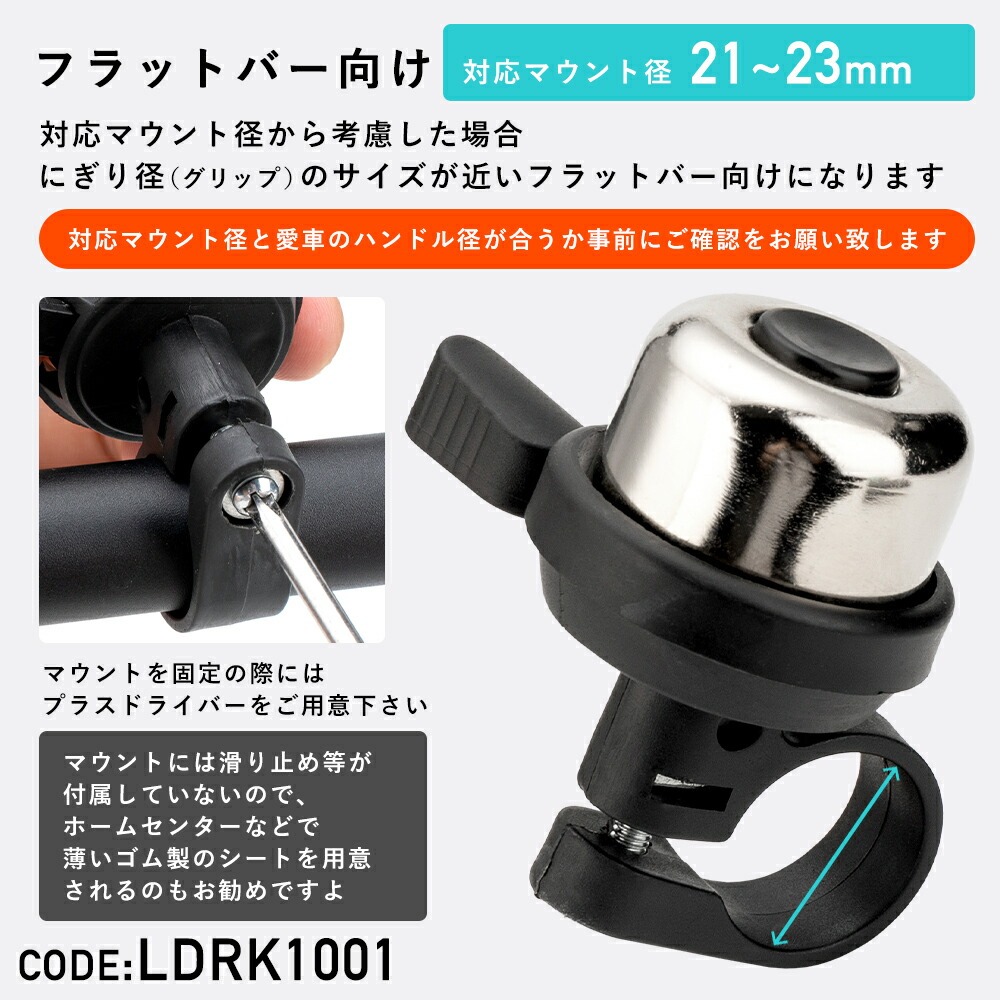定番デザインは取り付ける位置によって鳴らし方が変わるので、使いやすい向きを選べます。フラットバー向けデザインは、さびにくく見た目にもきれいな仕上がりです。