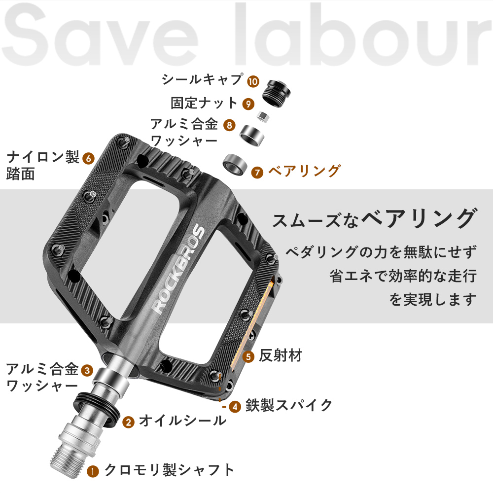 広い踏面でしっかり踏める 安定感抜群ナイロンペダル