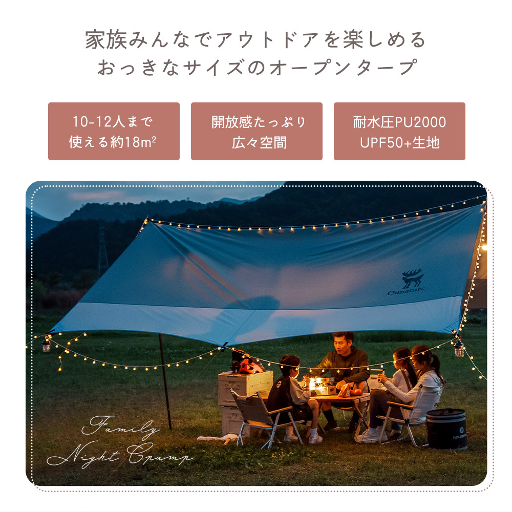 家族や友達と楽しむアウトドアに♪ 大人数対応 おしゃれな【オープンタープ】