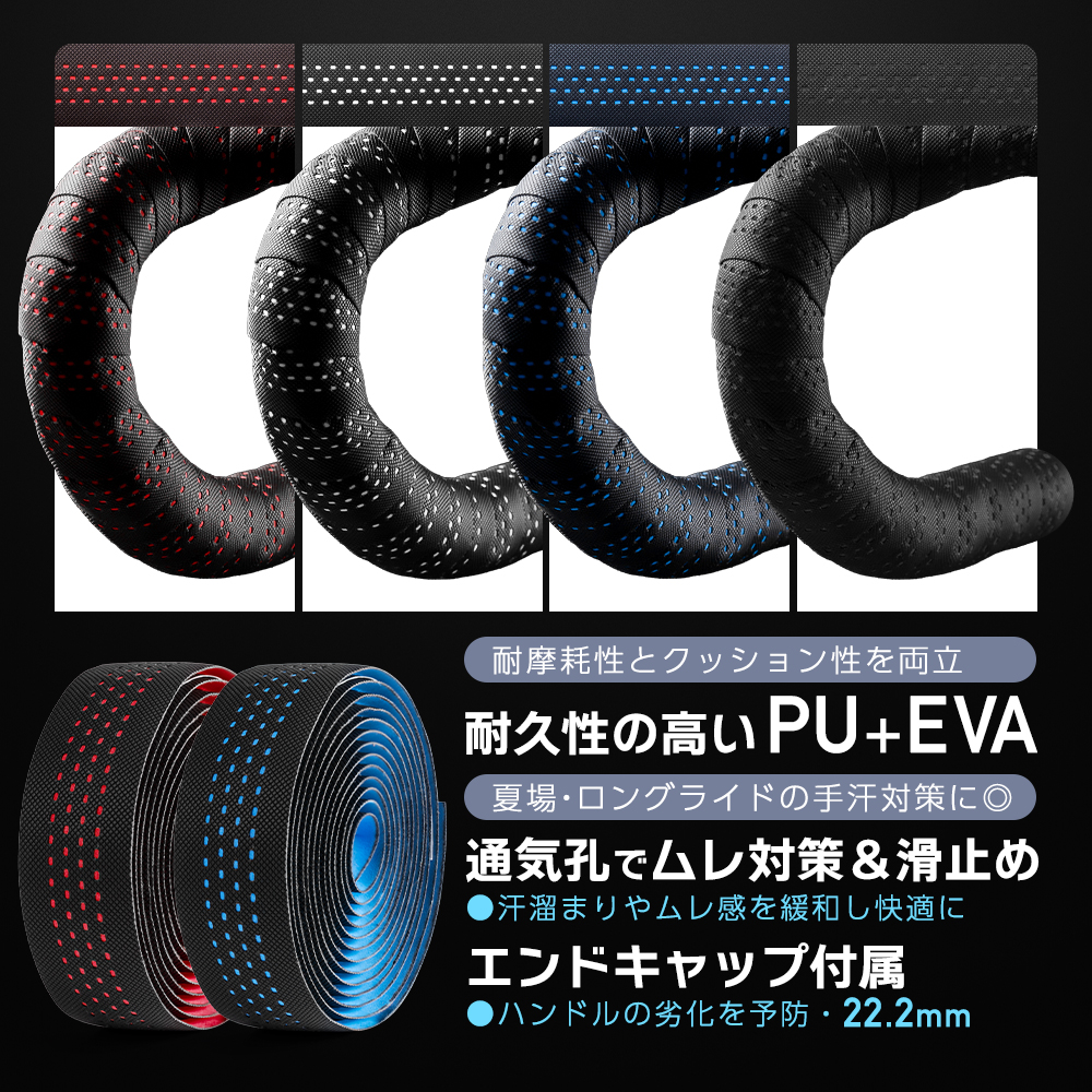 ・PU素材の吸い付くような握り心地と、EVA素材のクッション性で、手の疲れを緩和し快適なロングライドへ