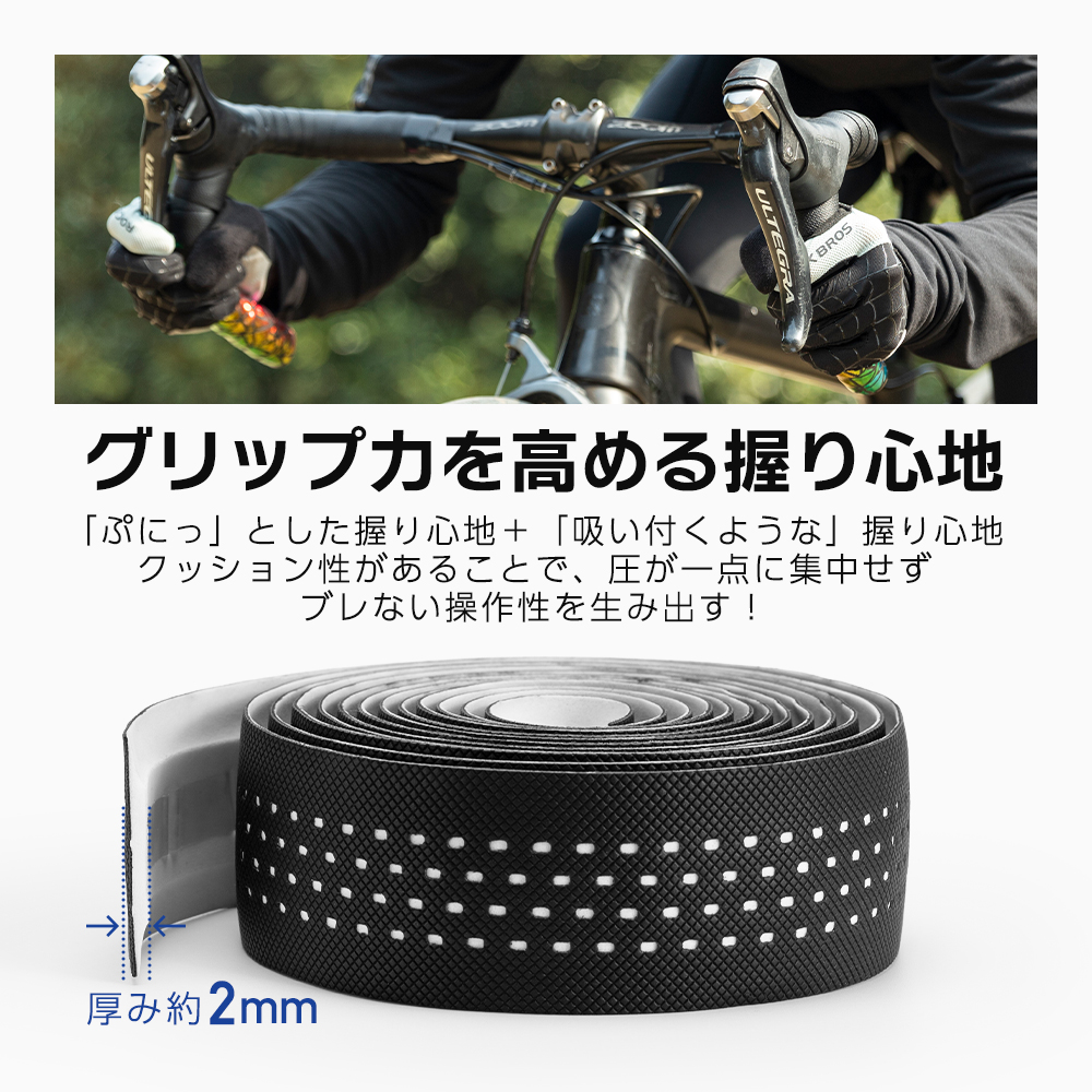 毎日の通勤通学で手汗やムレが気になる方や、しっかり握れて疲れにくいグリップ感を求めている方におすすめの、実用性重視タイプのバーテープです