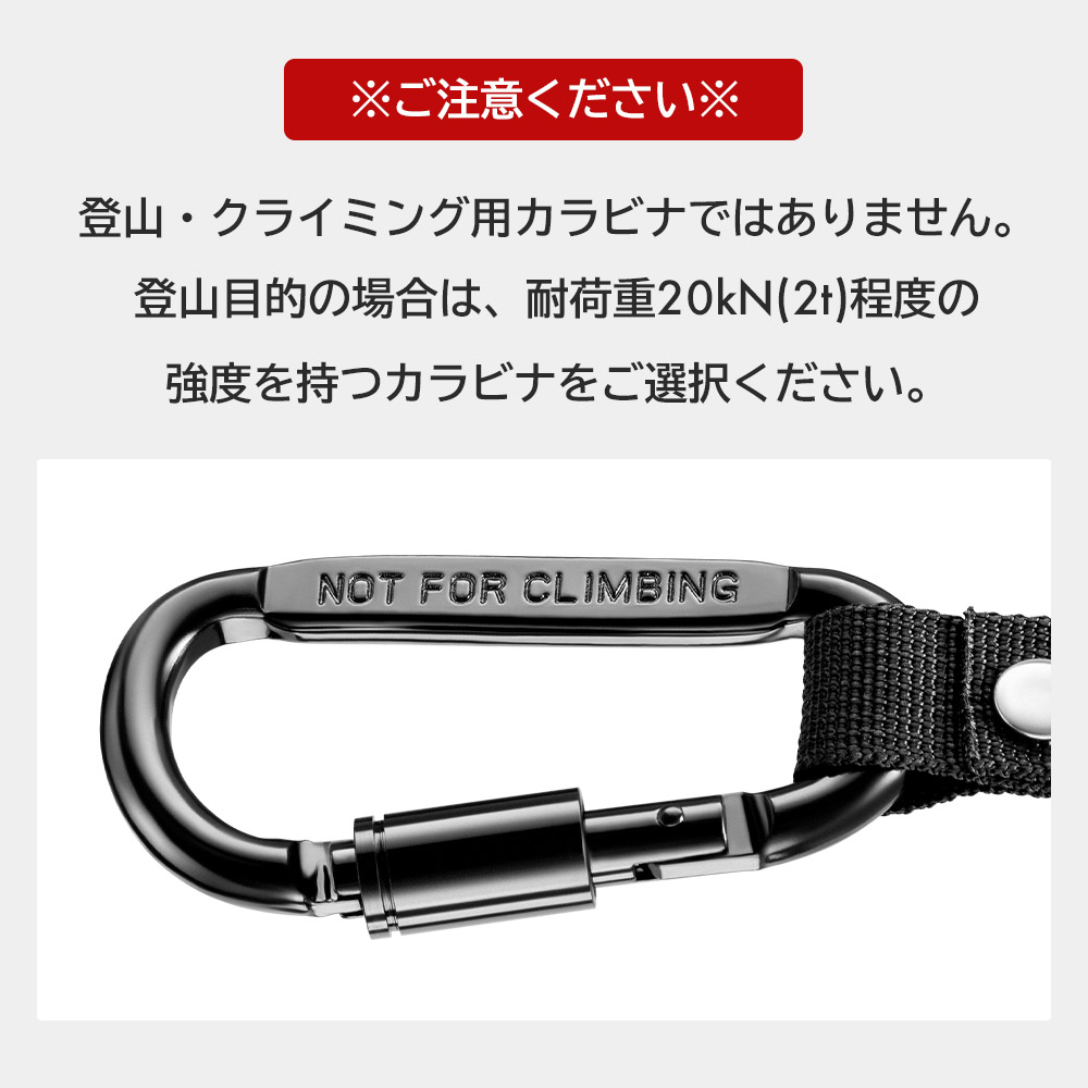 ※登山用ではありません。(登山で使用目的の場合は、カラビナの基準は耐荷重2kN(2t)程度です。)