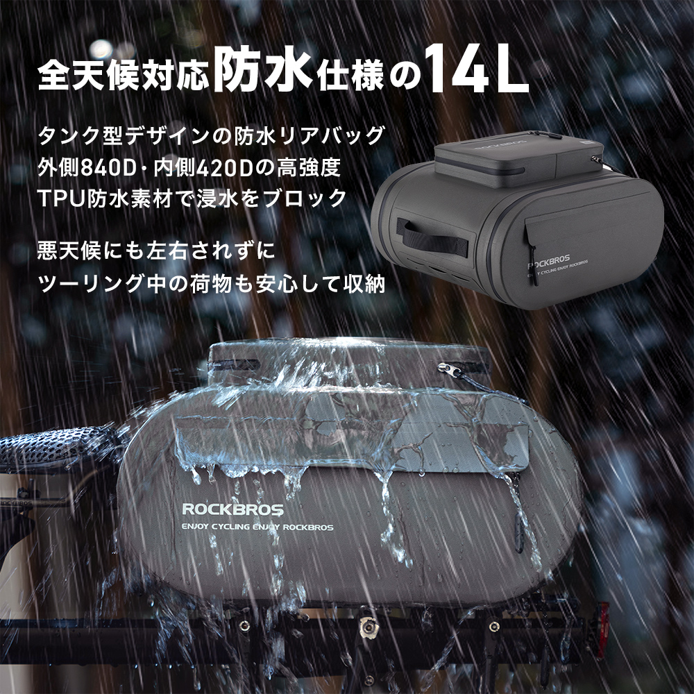 ・TPU素材×溶着構造で優れた防水性。雨天走行も安心で雨対策もバッチリ