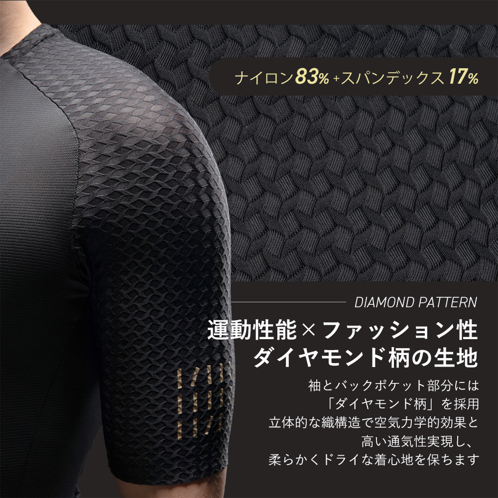 明暗が変化する「ダイヤモンド柄」が、運動性能とファッション性を両立。