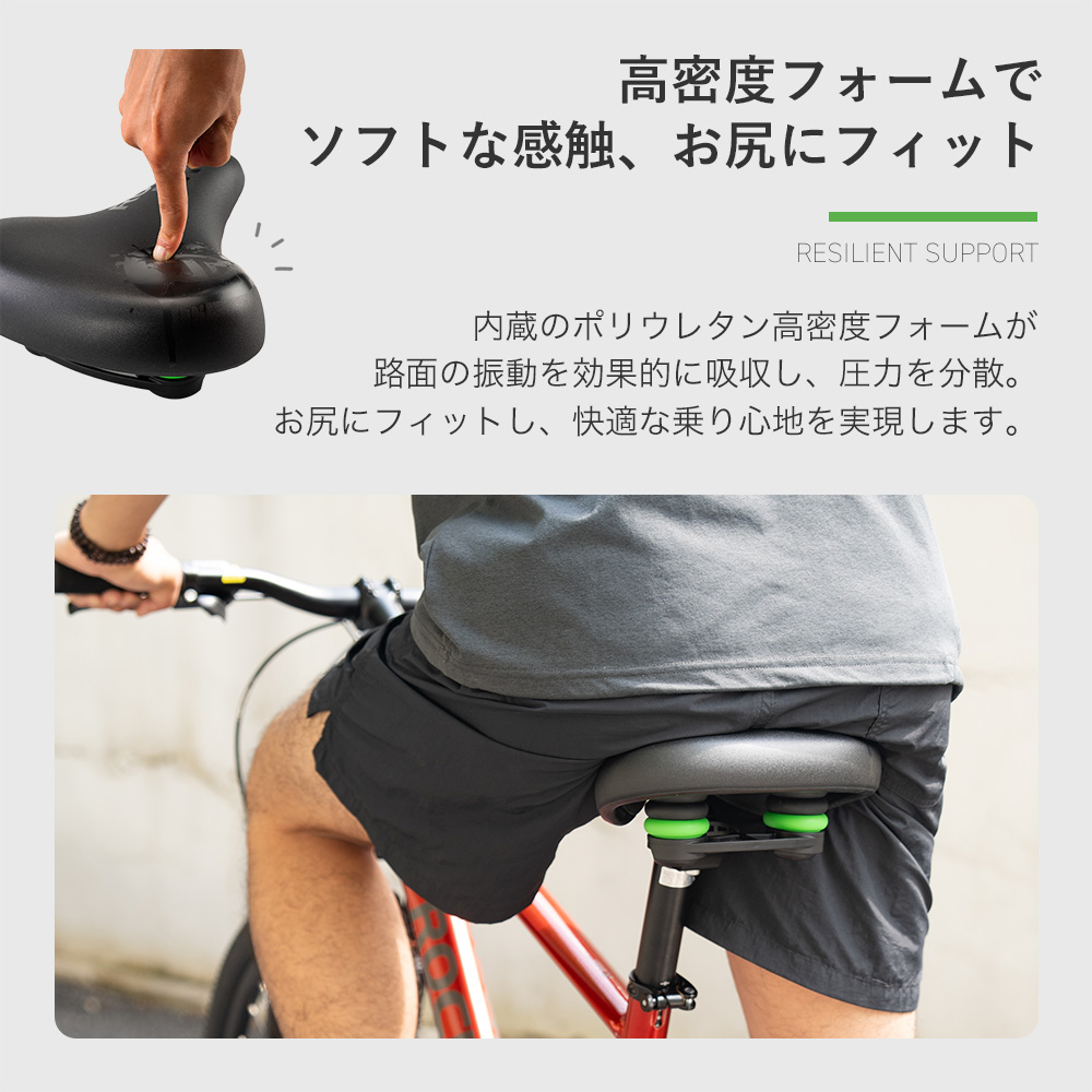 高密度のクッション性と衝撃吸収効果で、快適なライドをサポート
