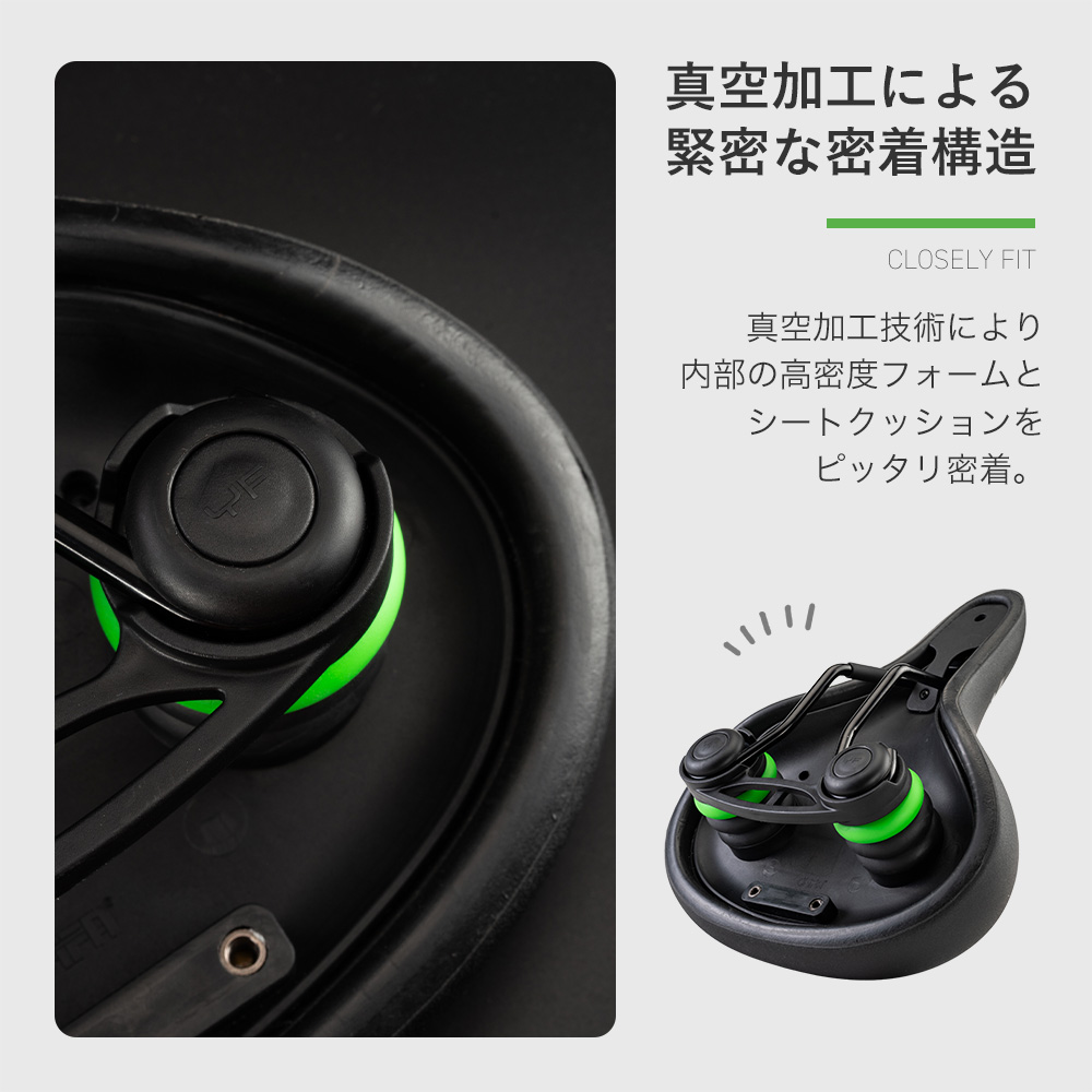 ・高密度フォームが臀部の曲線にフィットし圧力を分散させ、振動を吸収。