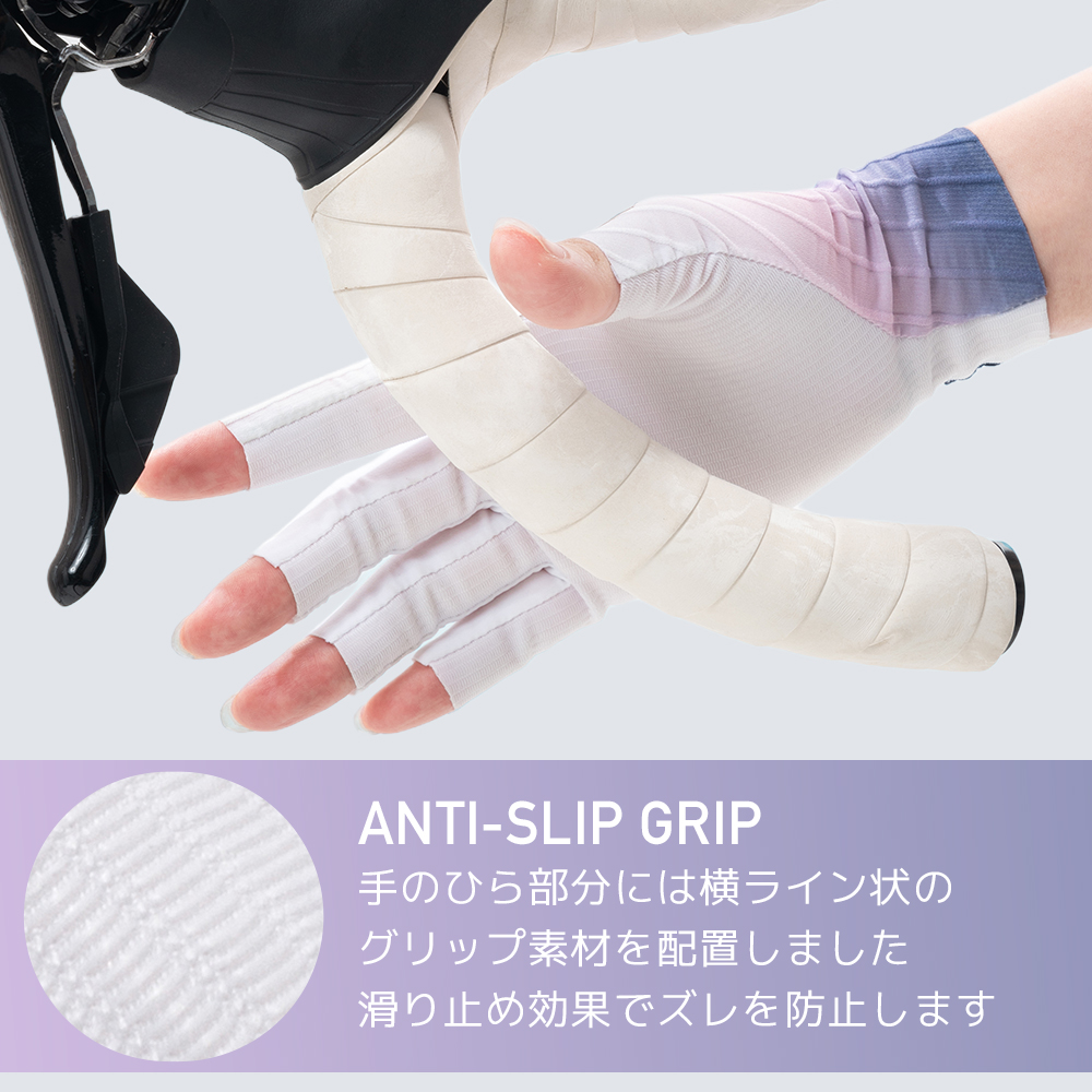 ・手のひらの滑り止め加工でドライブや自転車も安心。