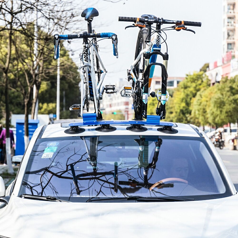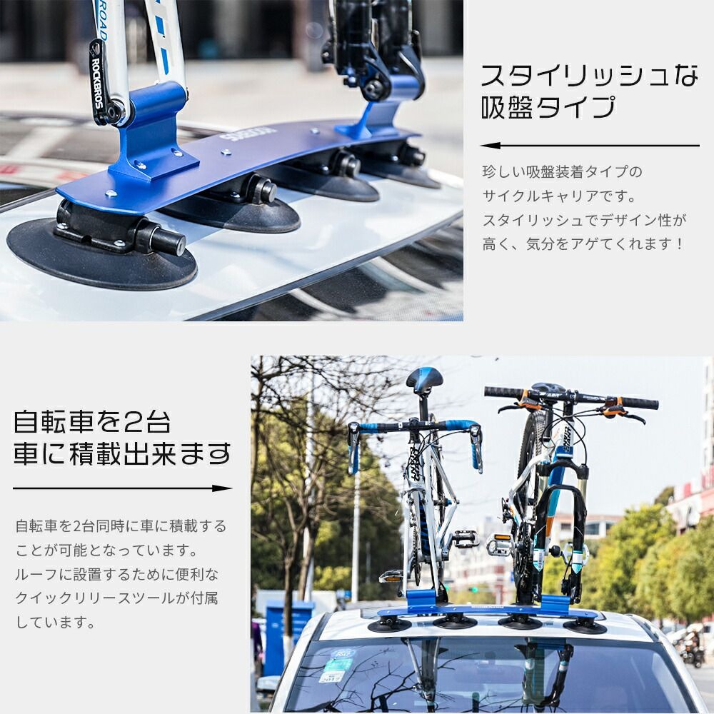 6.リア用吸盤を2.3.の手順と同様に自動車に付けて、強いベルトで自転車のタイヤと吸盤をしっかり固定してください。