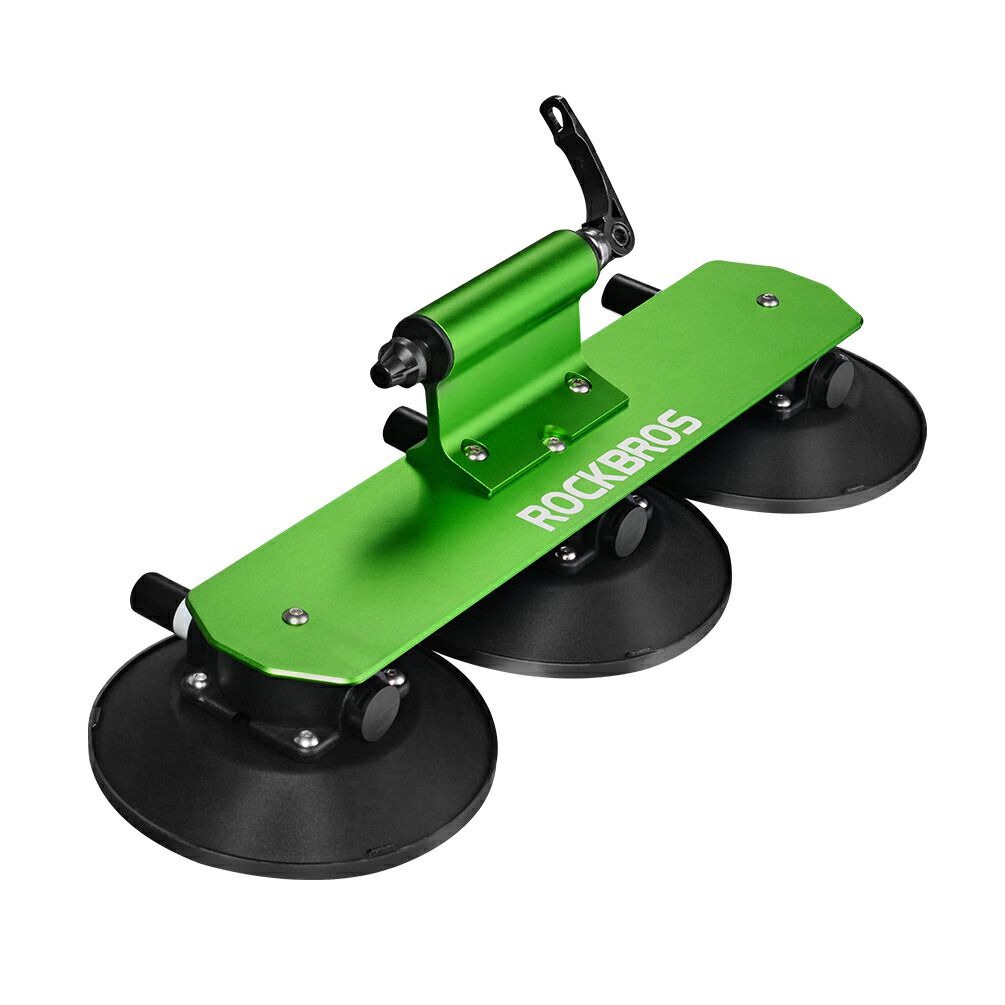 6.リア用吸盤を2.3.の手順と同様に自動車に付けて、強いベルトで自転車のタイヤと吸盤をしっかり固定してください。