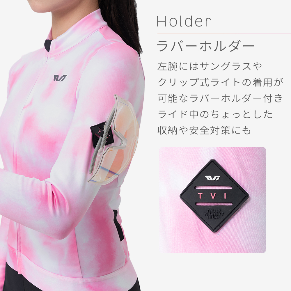 左腕にサングラスやクリップライトを留められるラバーホルダー付き