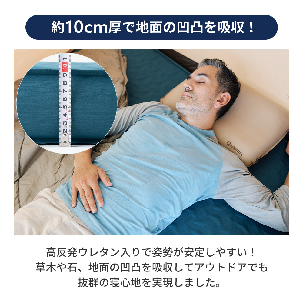 約10cmの高反発ウレタンフォームが地面の凹凸を吸収し、どんな場所でも快適な寝心地を実現します。