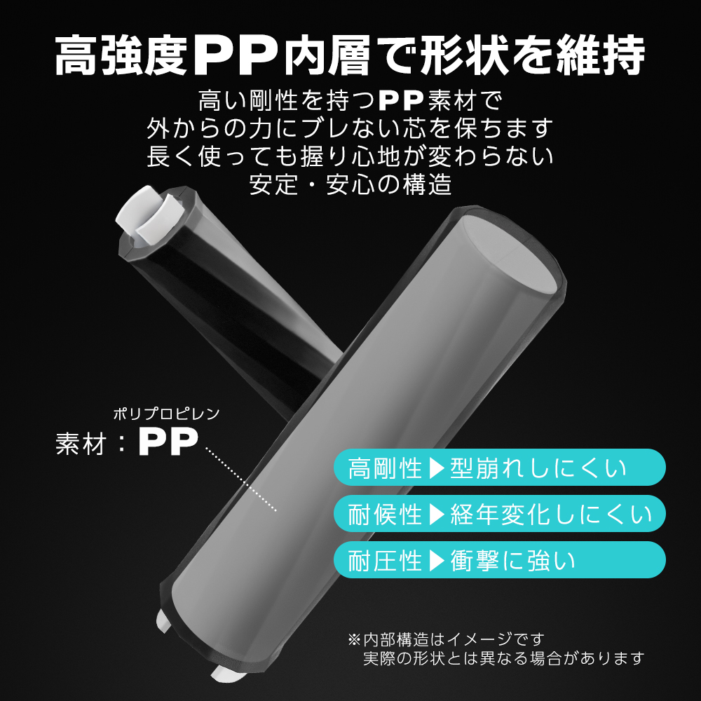高剛性のPP(ポリプロピレン)素材を芯部に使用。