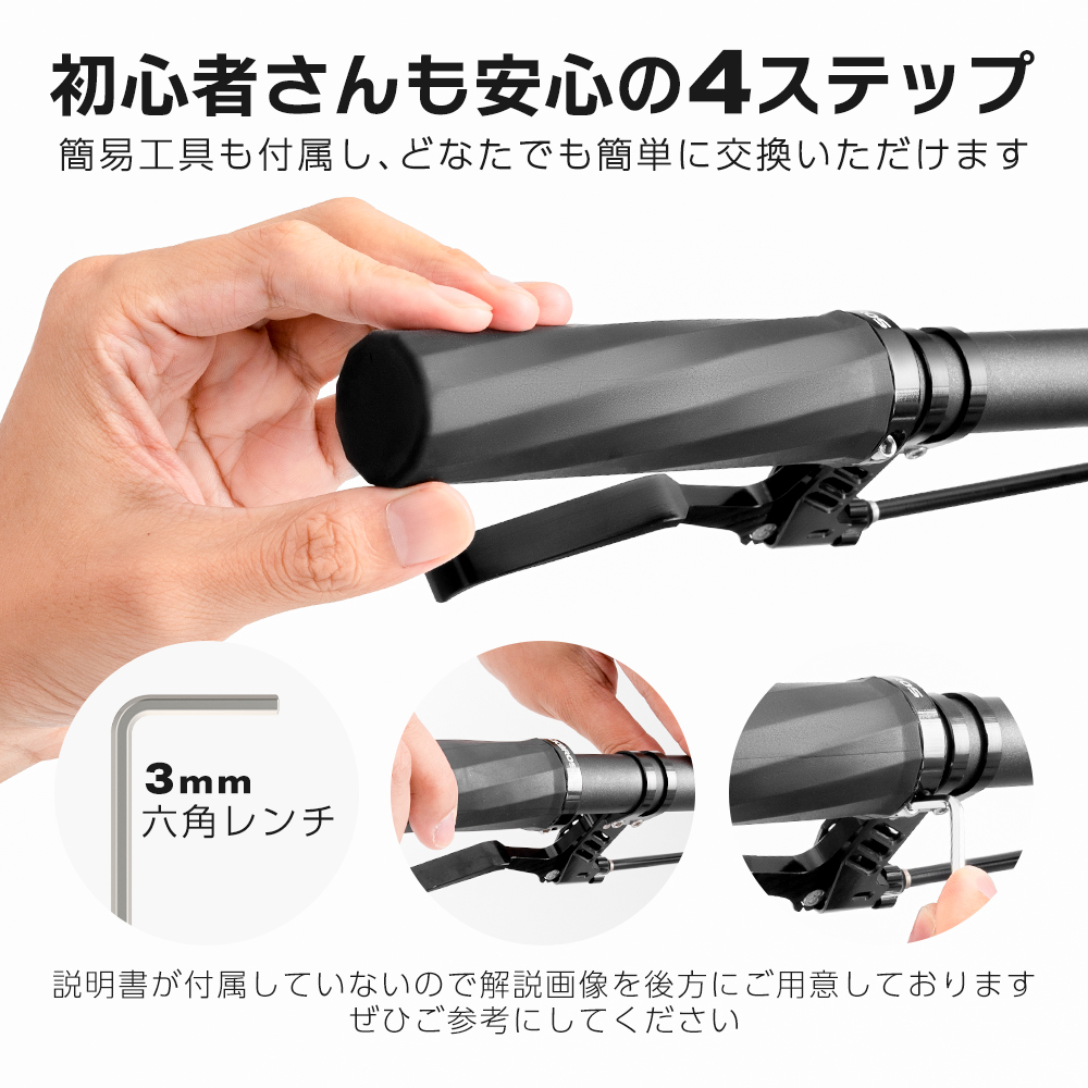 ■バッケージ内容:グリップ本体 2本(エンドキャップ・固定ネジ付き)・簡易工具(3mmの六角レンチ)