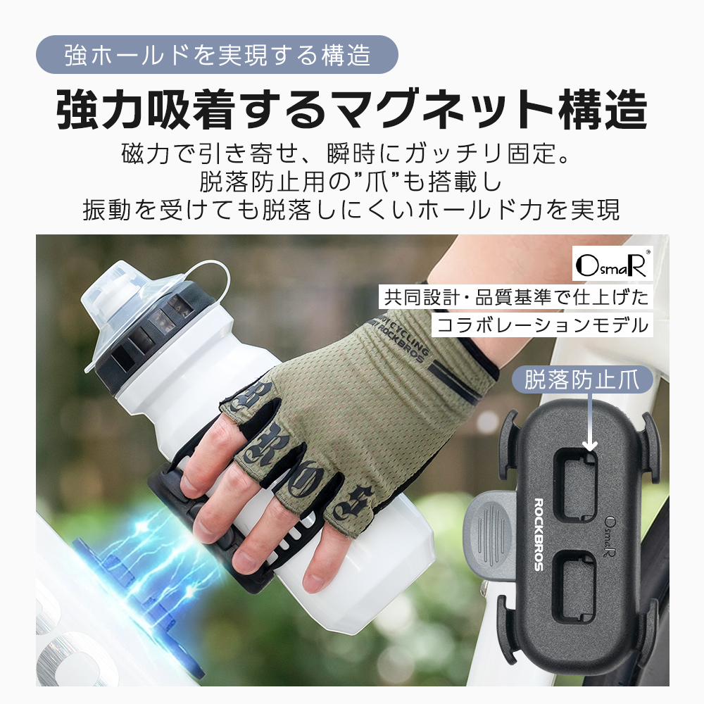 ・マグネットの力でボトルを瞬時に固定する次世代のボトルホルダーです。