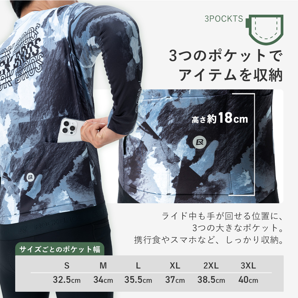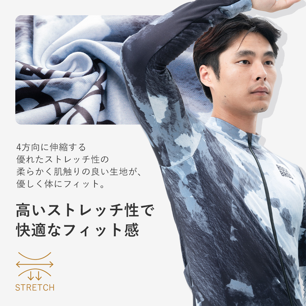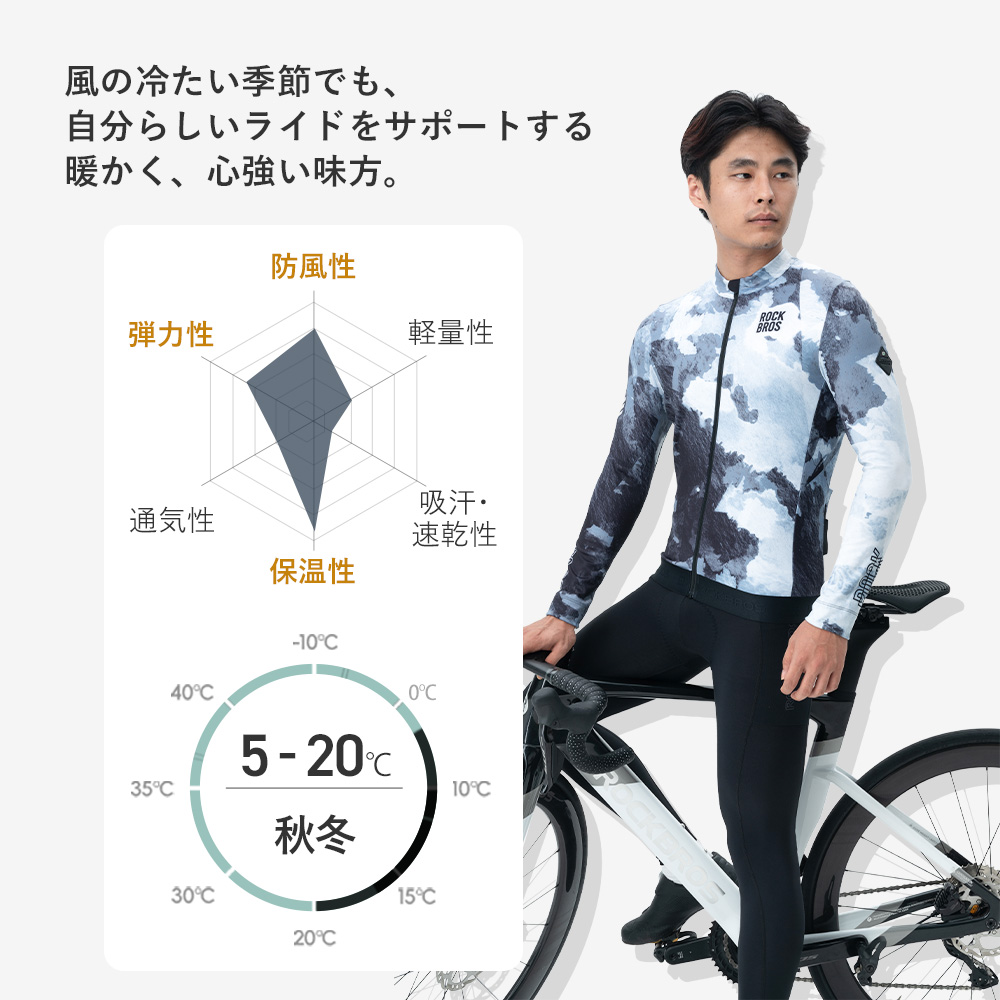 暖かく動きやすい裏起毛ストレッチ生地で、秋冬のライドを快適にサポートするサイクルジャージ。