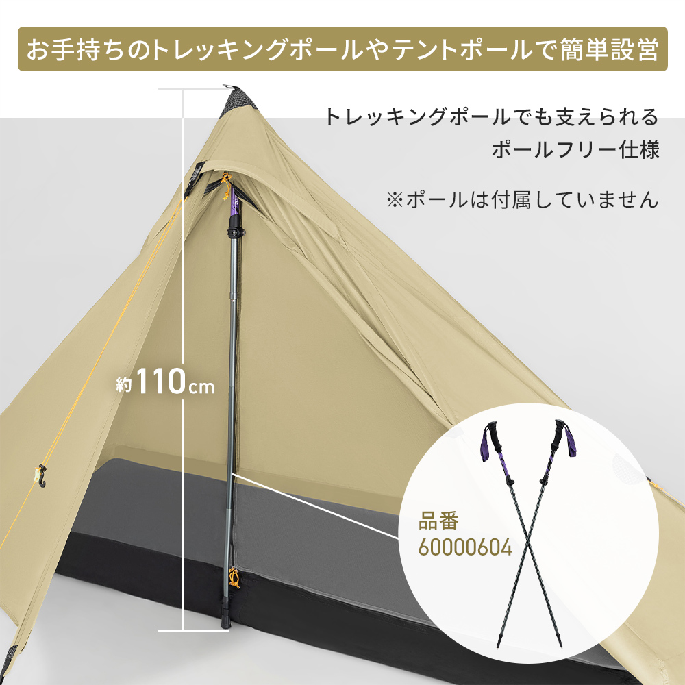・トレッキングポールで設営できる、超軽量・コンパクトなソロテントです。
