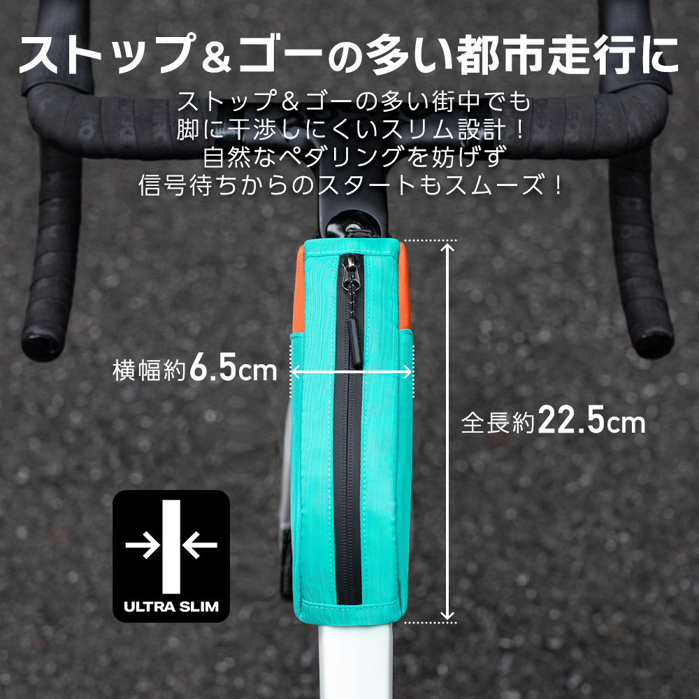 ・幅約6.5cmのスリムなデザインで、走行の邪魔にならずスマートに使用できるおすすめのアイテムです。