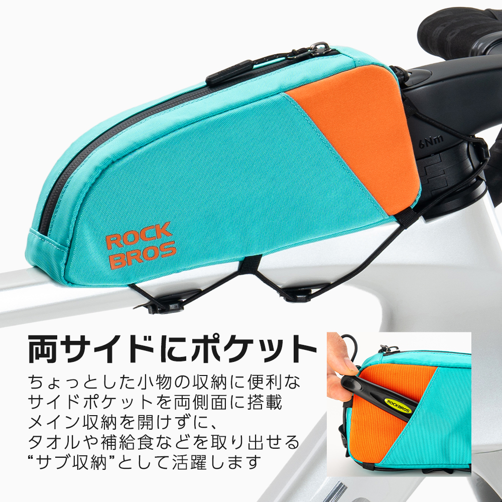 ・スマホや補給食、タオルなど小物の持ち運びに便利なトップチューブバッグです。